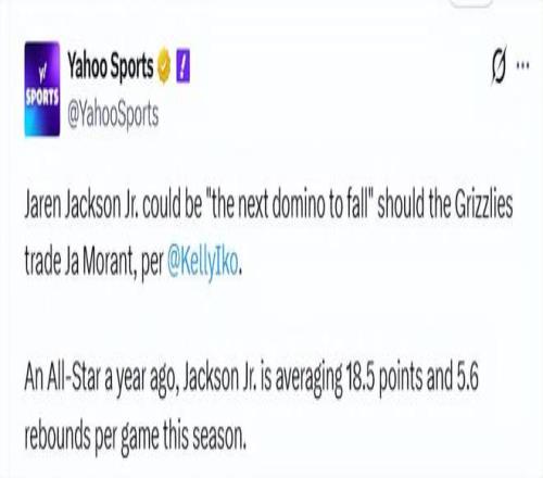 北京时间1月13日,据名记Kelly Iko报道,鉴于考沃德、扎克-伊迪、杰伦-威尔斯和卡姆-斯宾塞等年轻球员的亮眼表现,灰熊管理层决心将建队重心转向培养新人。在与其他球队高管交流时,一种观点逐渐升温:即便灰熊坚称小贾伦-杰克逊是球队未来的核心,且他的球风与莫兰特形成鲜明互补,但如果莫兰特的交易最终达成,小杰克逊可能会成为下一个被摆上货架的球员。