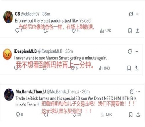 甚至连美国网友都在集体批评他表示:“有其父必有其子。”、“如果我没有看错的话,最后10秒国王已经承担失误的风险让给湖人球权了,你在干什么?”、“只有刷数据这一点,看着才像詹姆斯的儿子。”、“或许湖人应该早点上布朗尼,那就早反超过来了。”、“显然,你的三分比詹姆斯更强。”
