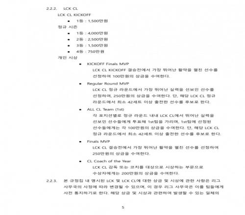 最新的LCK的规则手册中保留了常规奖项但不见奖金,但LCK CL还是有联赛奖金的