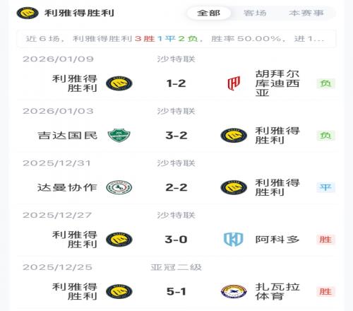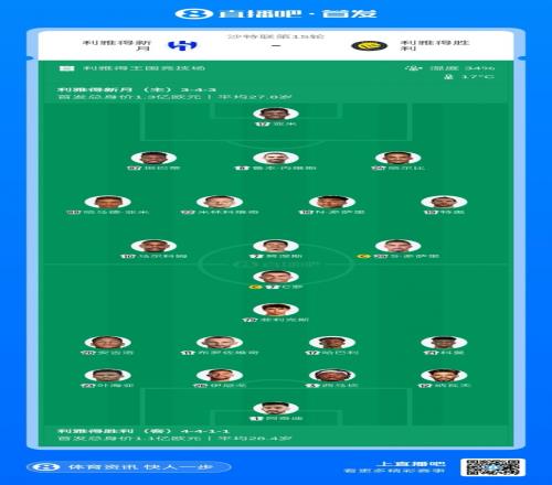 利雅得胜利首发:1-阿奇迪、12-纳瓦夫、26-伊尼戈·马丁内斯、3-西马坎、23-叶海亚、11-布罗佐维奇、17-哈巴利、20-安吉洛、21-科曼、79-菲利克斯、7-C罗